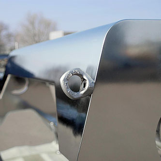 Pour la vis, nous avons appliqué le nouvel acier ICE mondialement connu de nos chaînes de levage et d’arrimage à un grand nombre de nos anneaux articulés. Cela permet des capacités (CMU) plus élevées ou des diamètres de vis plus petits ainsi qu’une utilisation à basse température jusqu’à -40 °C. De nombreux autres avantages comme une plus grande résilience, une plus grande résistance à la flexion ainsi qu’une usure moindre.